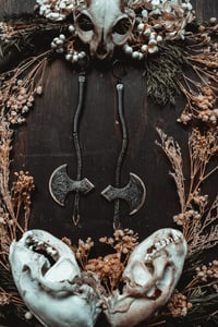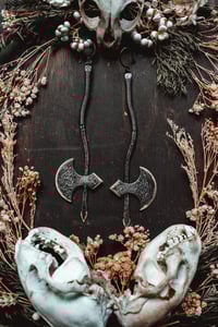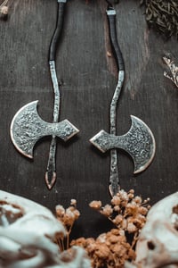 A pair of ear hangers created with sawed brass, hammered wire and silver.