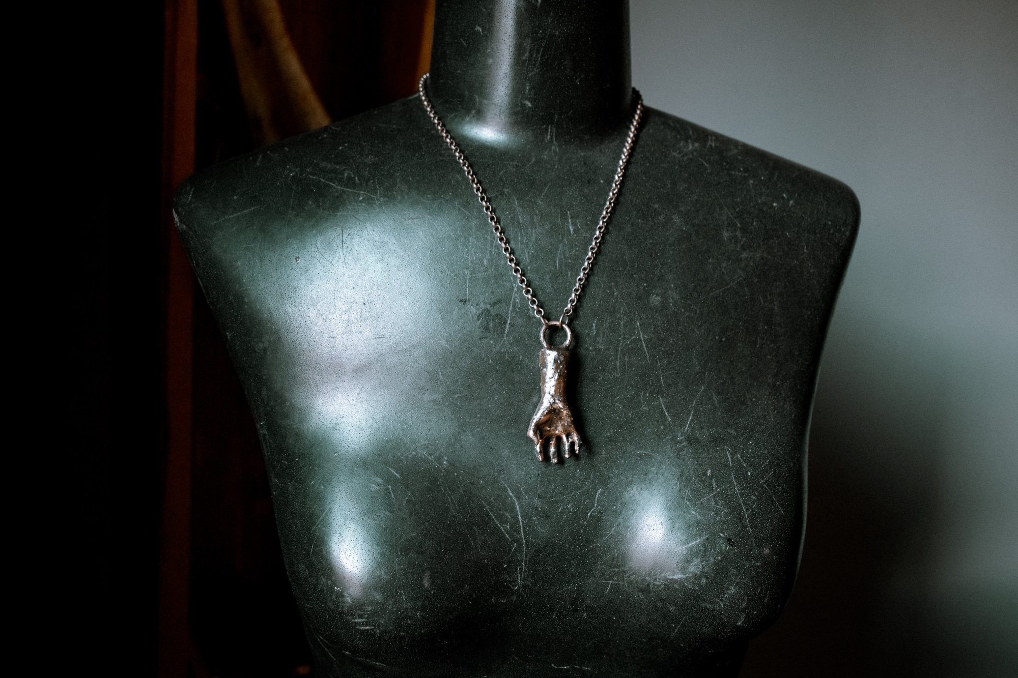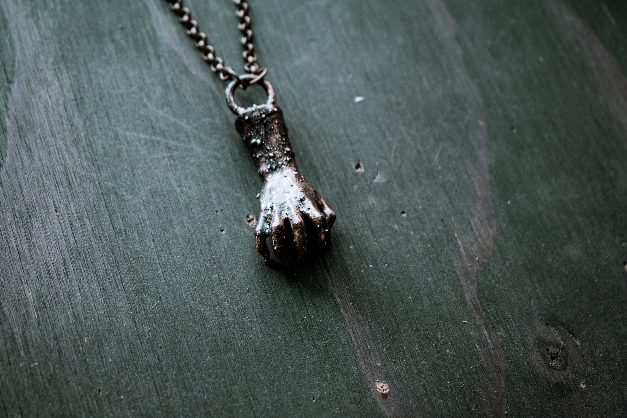handmade electroformed copper hand necklace