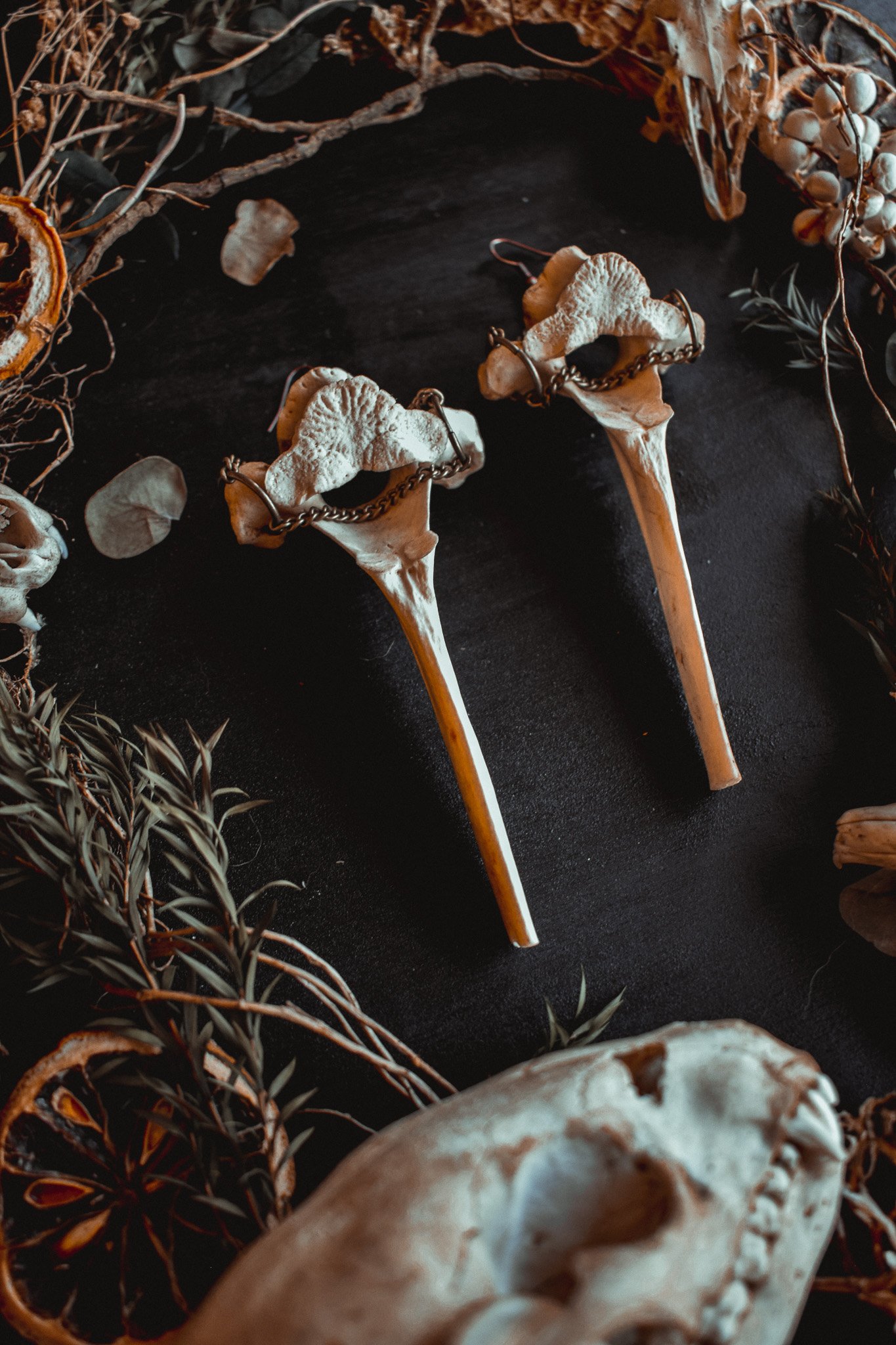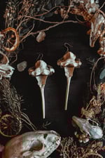 Simple pair of earrings created with brass chain and salvaged deer vertebra