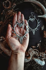 A pair of earrings created with hand cut brass that has been adorned in textured silver