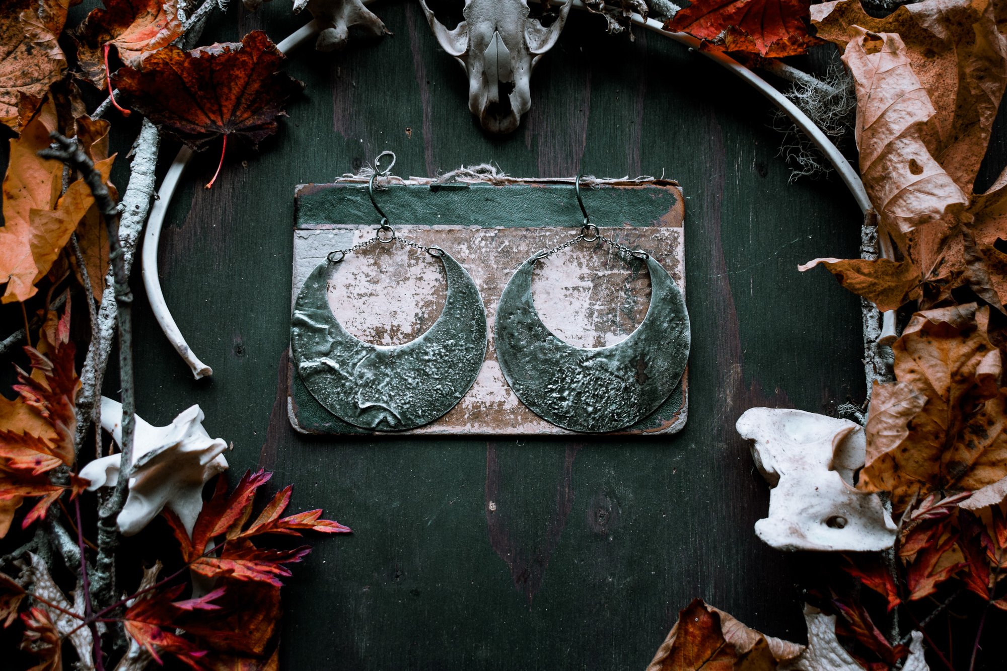 handmade silver soldered large crescent moon ear hangers