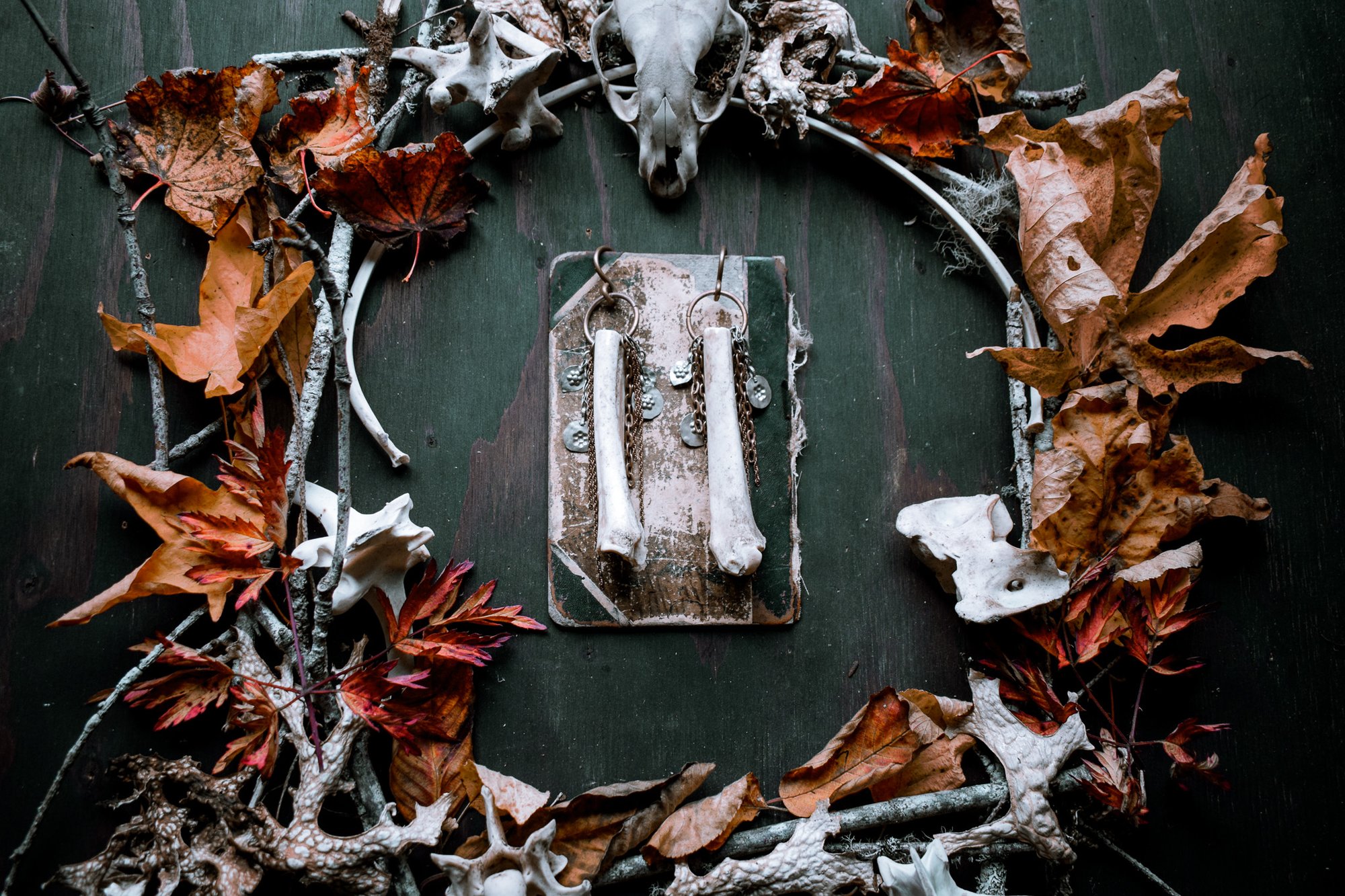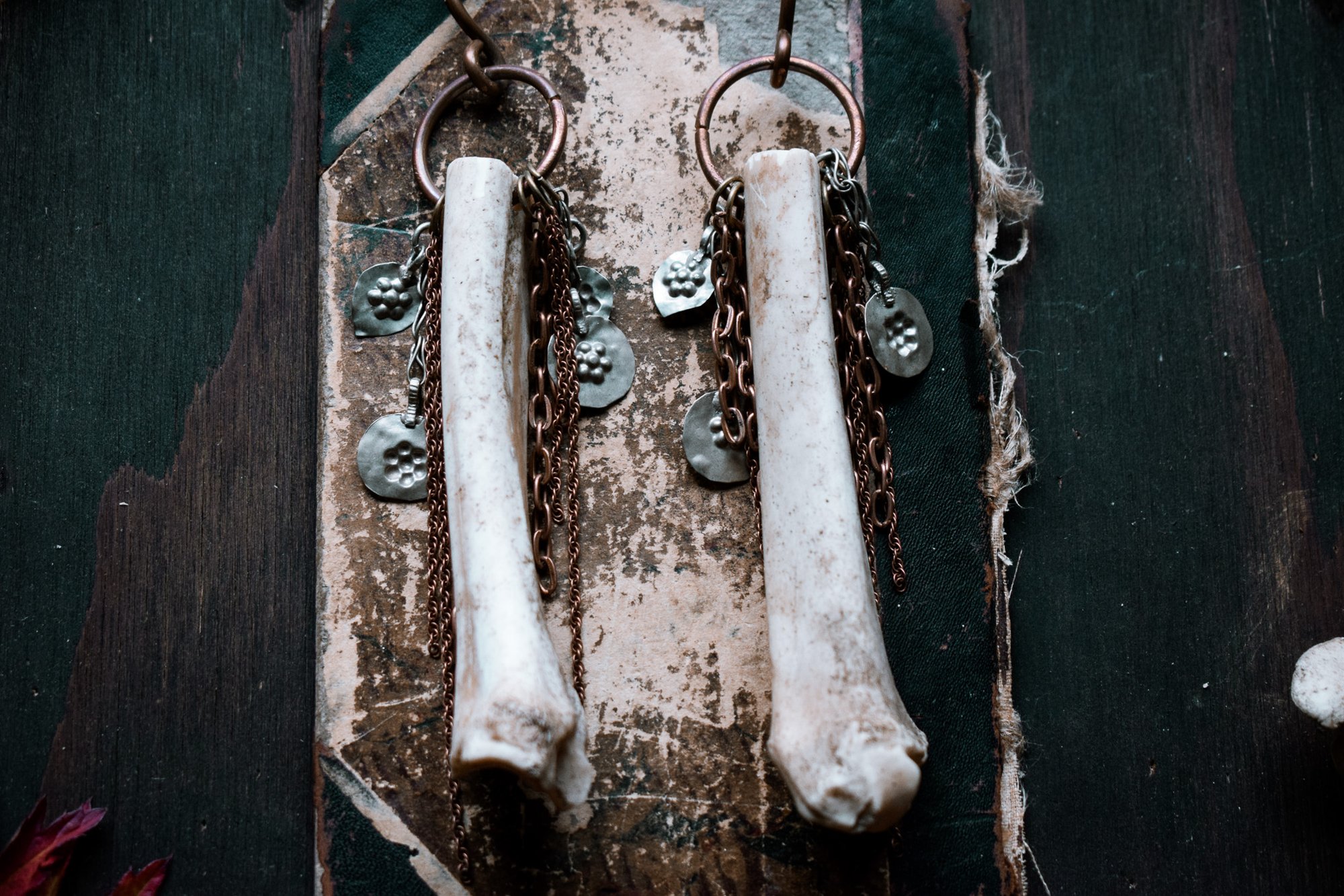 handmade bone and antique charm ear hangers with handmade brass hanger hooks