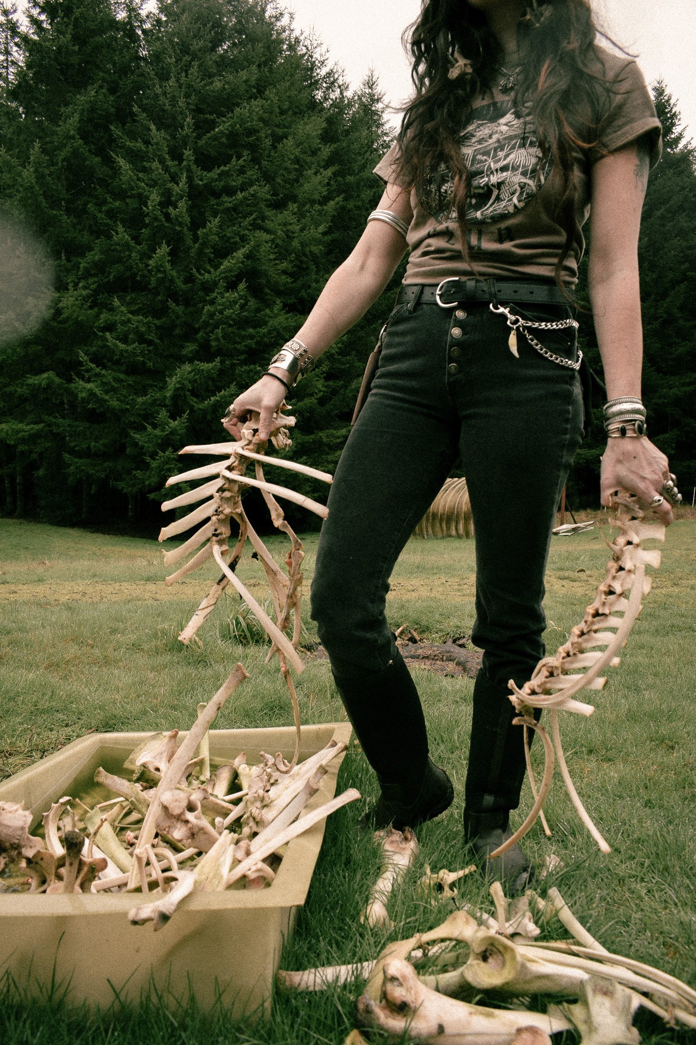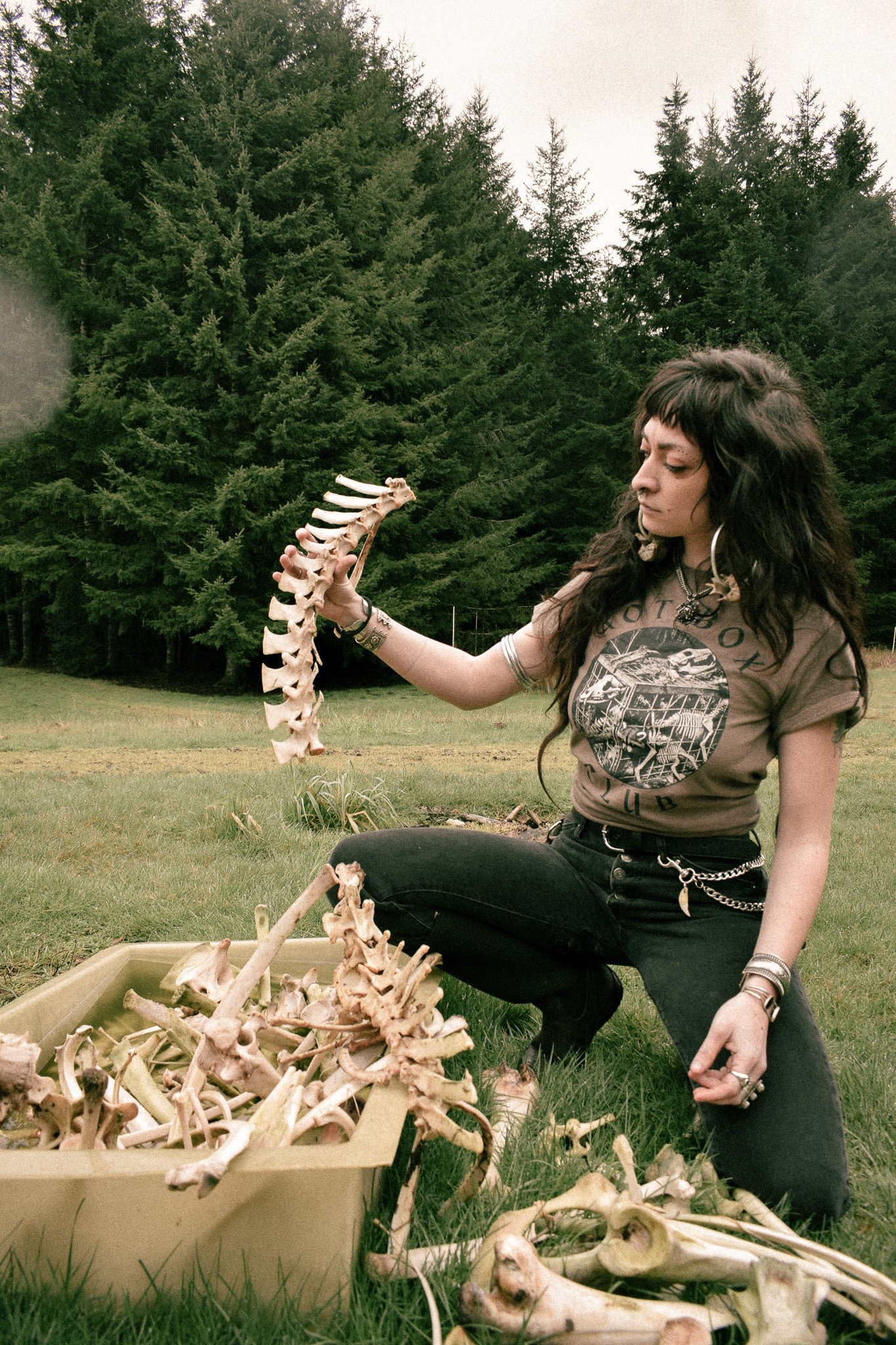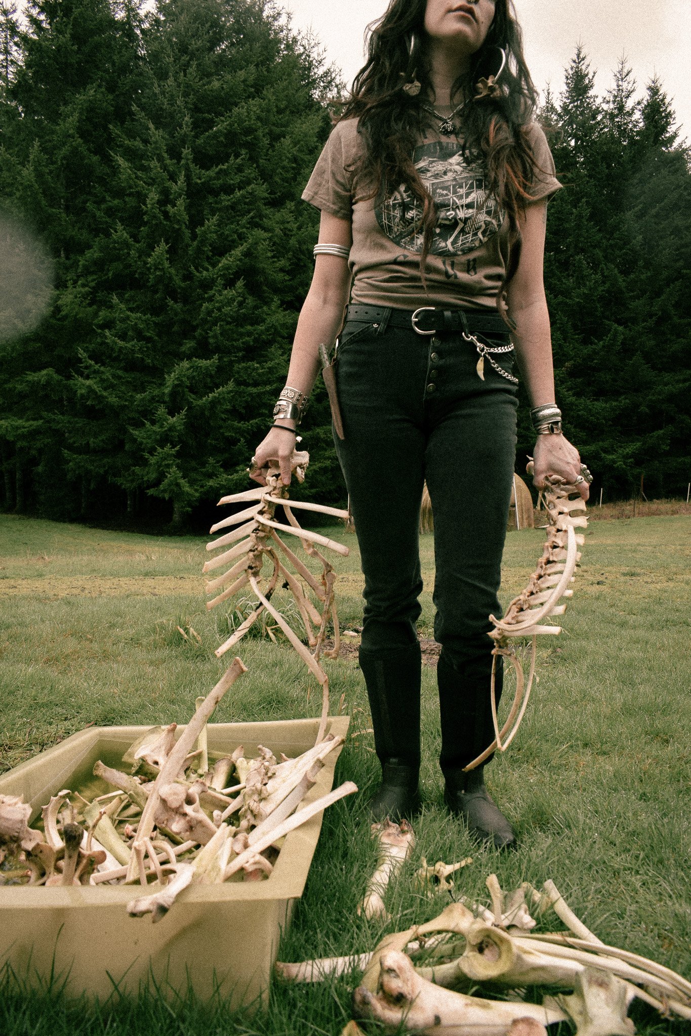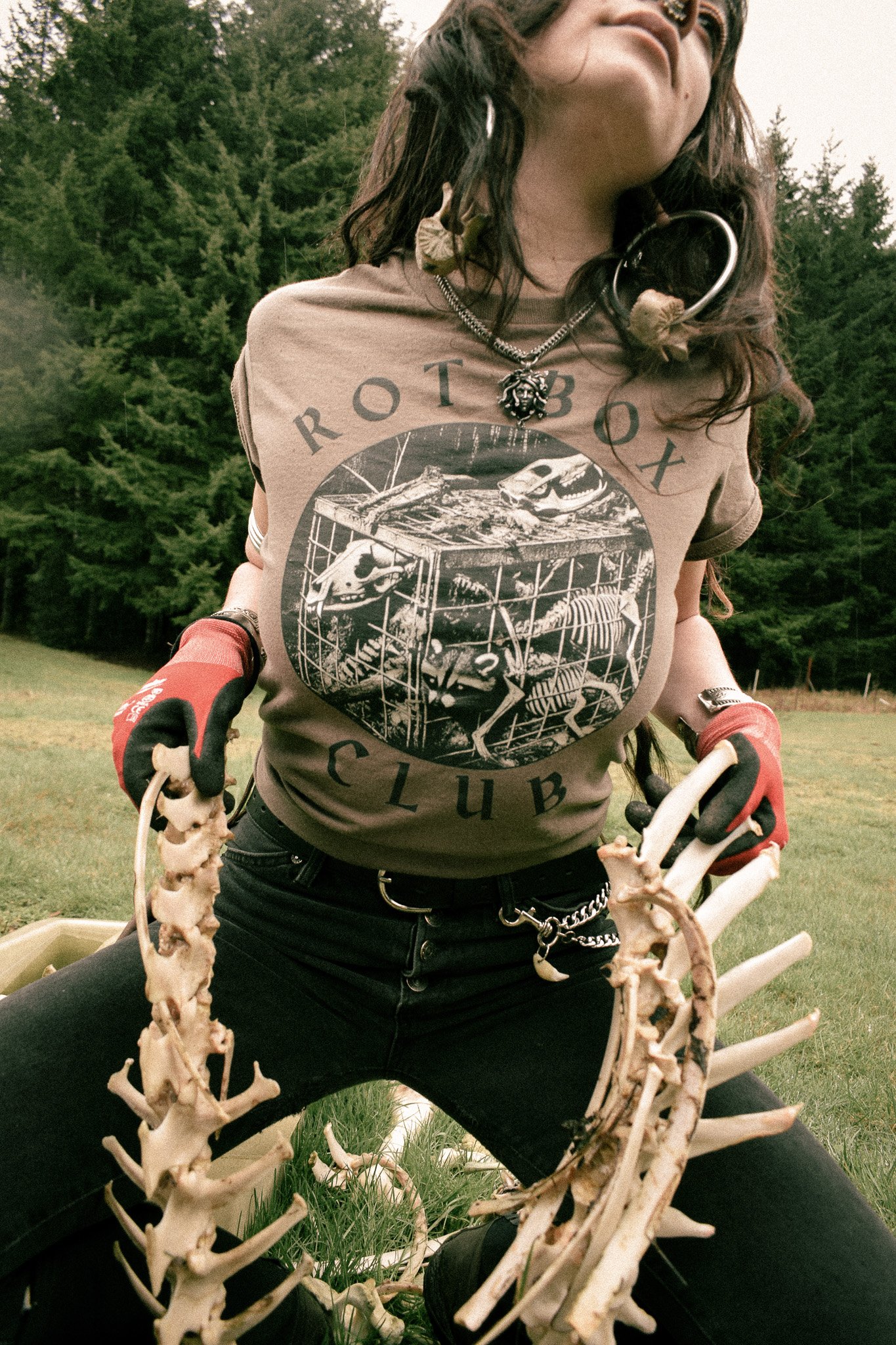 A shirt for those bone processors and roadkill collectors, bone workers and rot box babes.